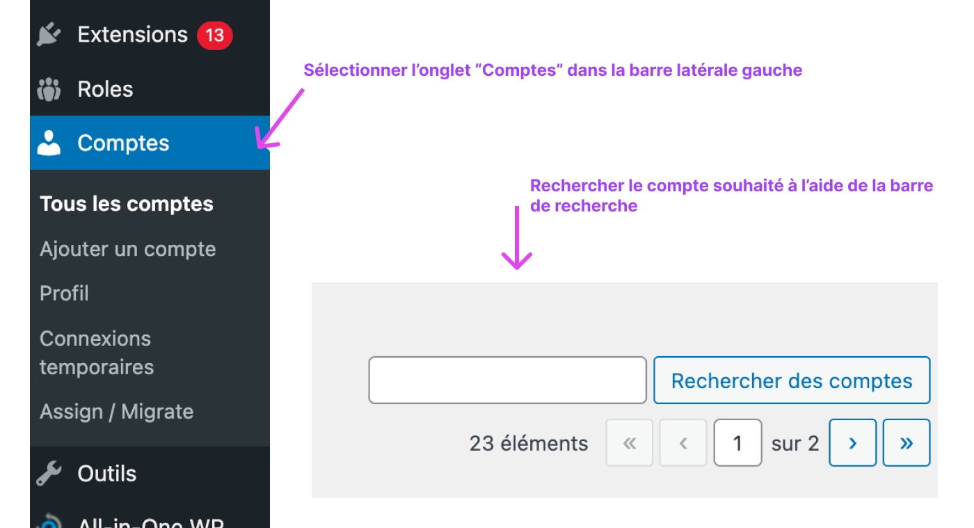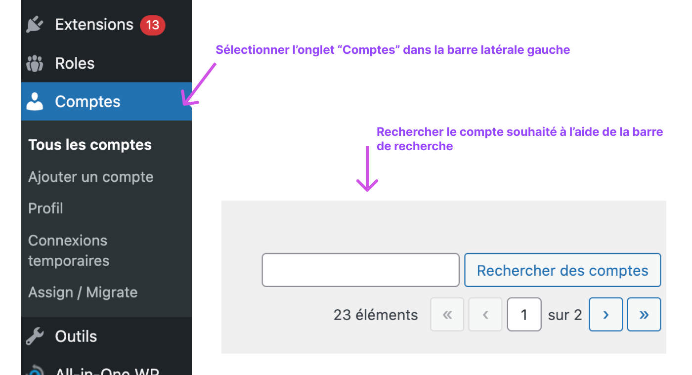 Pour modifier un compte, veuillez suivre les étapes suivantes :